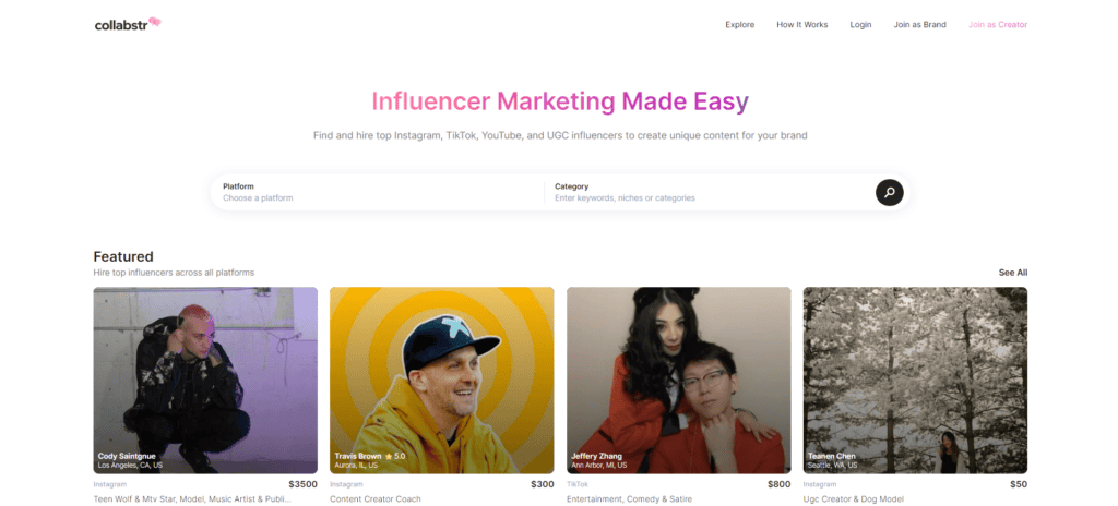Designed to connect brands with micro-influencers, this platform is akin to a skilled artisan cultivating a network of niche content creators. Collabstr offers a user-friendly marketplace for discovering, vetting, and collaborating with nano and micro-influencers, helping brands reach highly engaged, targeted audiences.